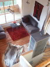 Olohuoneessa on vuolukivitakka, jonka kierrettyään