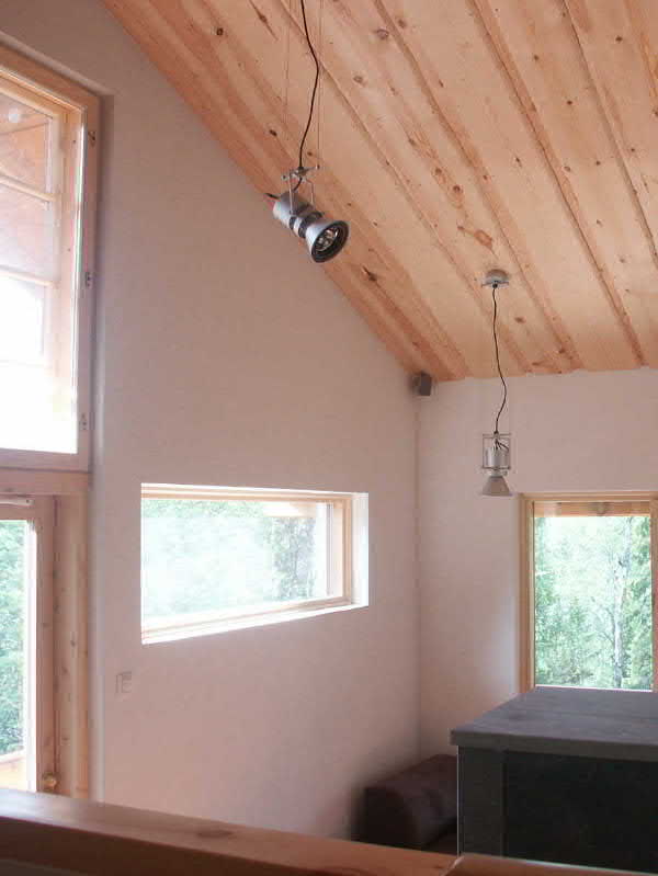 seinät ovat valkoiset ja hiertorapatut. Vinon katon pintana on