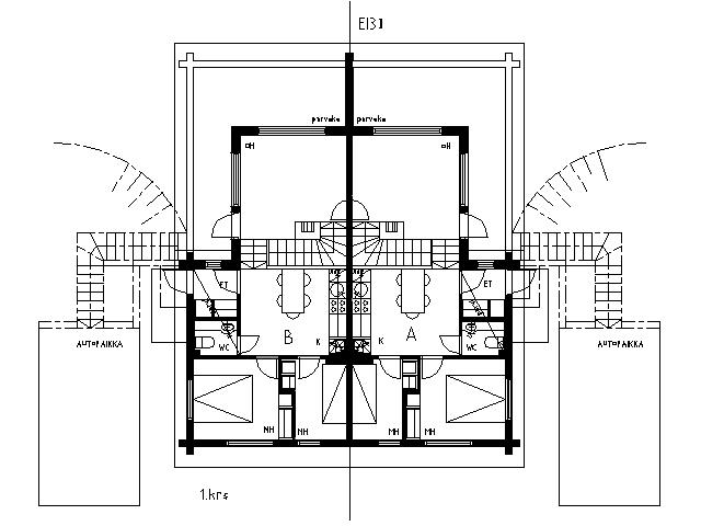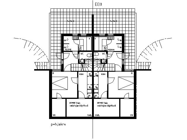 sijaitsee aula, saunatilat, wc, makuuhuone, kodinhoitohuone, vaatehuone